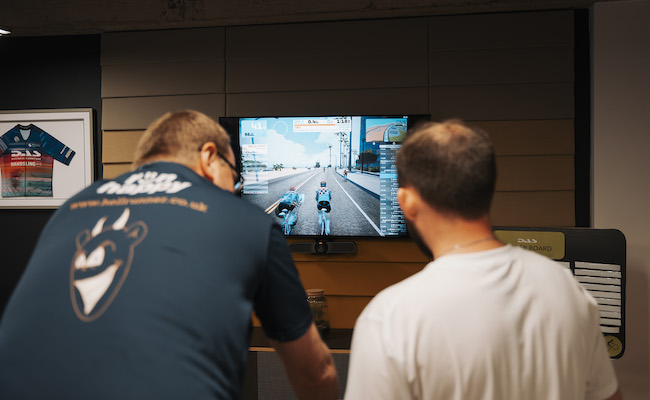 The showroom, launched in its new double-size format as pictured, will be open to riders on 9 May, 4 July and 5 September, for refreshments, chat and friendly competition. The Zwift Challenge forms part of a season of DAS cycling activity. More details via the Velocity website soon.