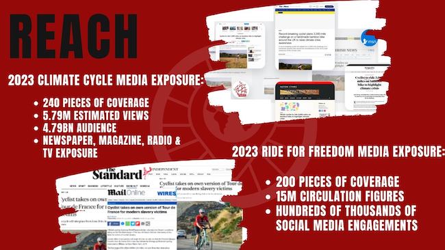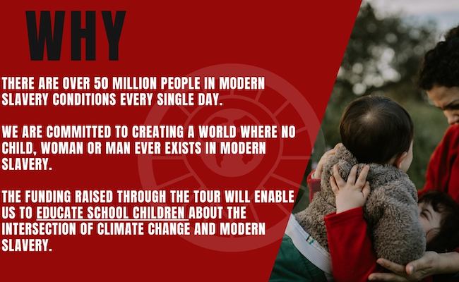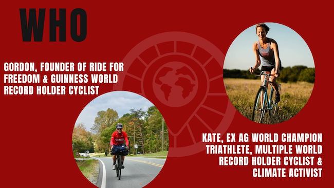 “I’m very excited for this one,” Gordon told Velocity. “It’s the first time we’ve brought together the increasingly pressing issue of how climate change is creating conditions for modern slavery to be perpetrated. And it’s the first time we’ve partnered to put on a ride with another high profile cyclist: environmentalist Kate Strong, who holds a couple of cycling world records.”